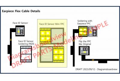 아이폰 이어피스 Face id sensor FPC Cable안녕하세요 다이어그램즈 보드뷰 입니다. 아이폰 이어피스 교체시 페이스 아이디가 페어돼는 센서를 교체해주지 않으면 페이스 아이디가 비 활성화 됩니다. 비 부분에서 솔더링 교체가 번거로운...