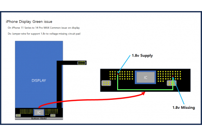 아이폰 그린 스크린 이슈안녕하세요 다이어그램즈 보드뷰 입니다. iOS XXXX 가 업데이트 되면서 아이폰 디스플레이에 1.8v 라인 공급이 되지않는 문제가 발생하였습니다. 그린 스크린으로 인한 문제로 해당 내용은... -